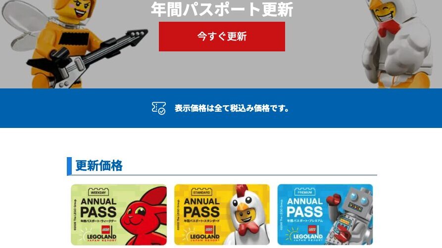 レゴランドの年パスは新規で購入するより更新価格の方がお得!