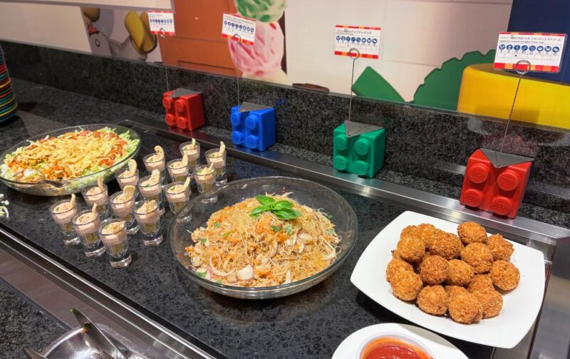 レストラン会場は、お正月のおめでたい雰囲気とレゴのワクワク感が融合した特別な空間。「正直高いな…」と震えていたみちるですが(笑)並んだお料理を見た瞬間に「あ、これはお得感あるわ」と思ってしまうほど豪華なラインナップでした。
