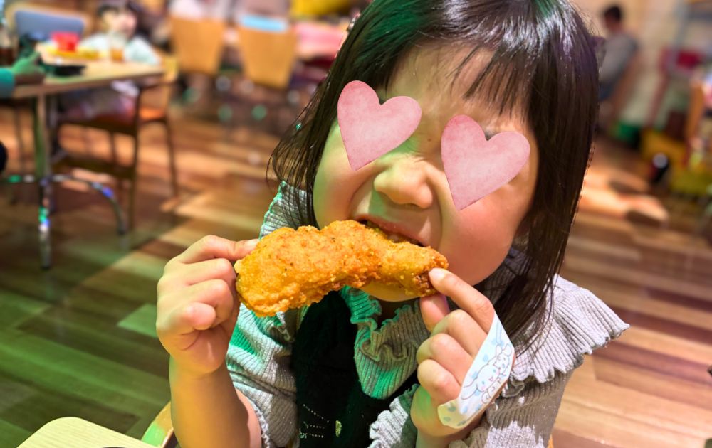 みちるファミリーは、レゴランド内にあるレストラン「チキンダイナー」が大大大好き。このチキンは、あのケンタッキーよりおいしいんじゃ?!と思えるほど、ザクザク食感がたまらんスーパーチキン。(おおげさに聞こえるかもしれませんが、本心です!)